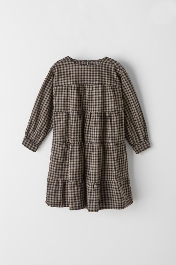 ザラ Zara Kids Collection ワンピース 女の子 ひざ丈 長袖 フリル チェック 千鳥格子 7 黄色系 キッズ 002 ベクトルパーク
