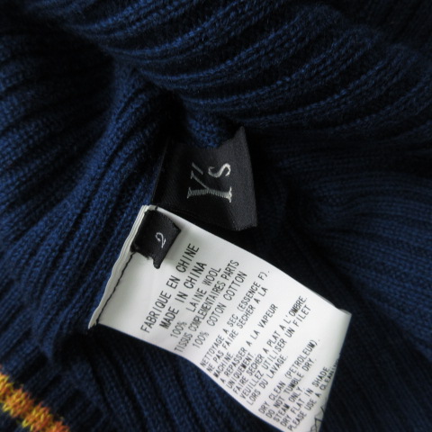 ワイズ Y S ワンピース ミニ 長袖 ニット タートルネック ヨウジ Yr K26 580 ネイビー イエロー 紺 黄 ウール 2 レディース 121 ベクトルパーク