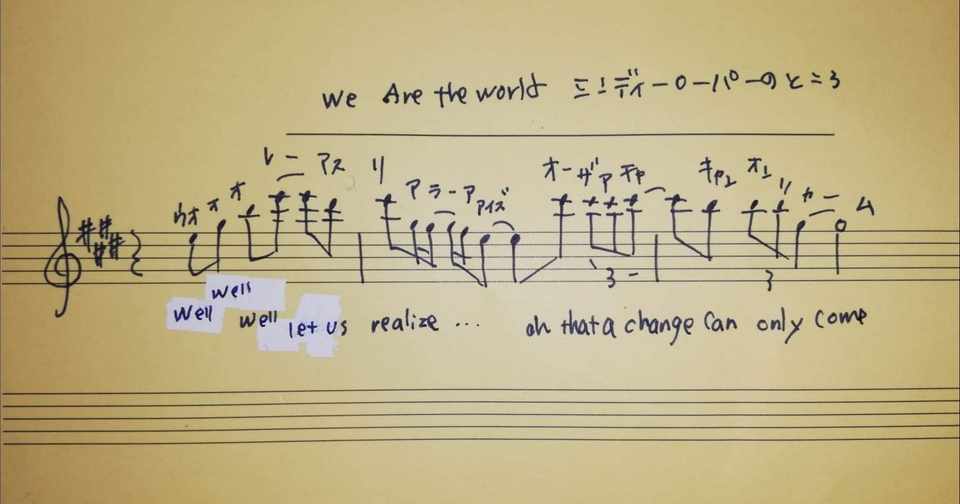 We Are The World のシンディ ローパーのところの譜割り Ryo Kimura Note