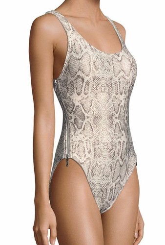 New With 140 Carmen Marc Valvo Metallic Zip Side Swimsuit Size 14