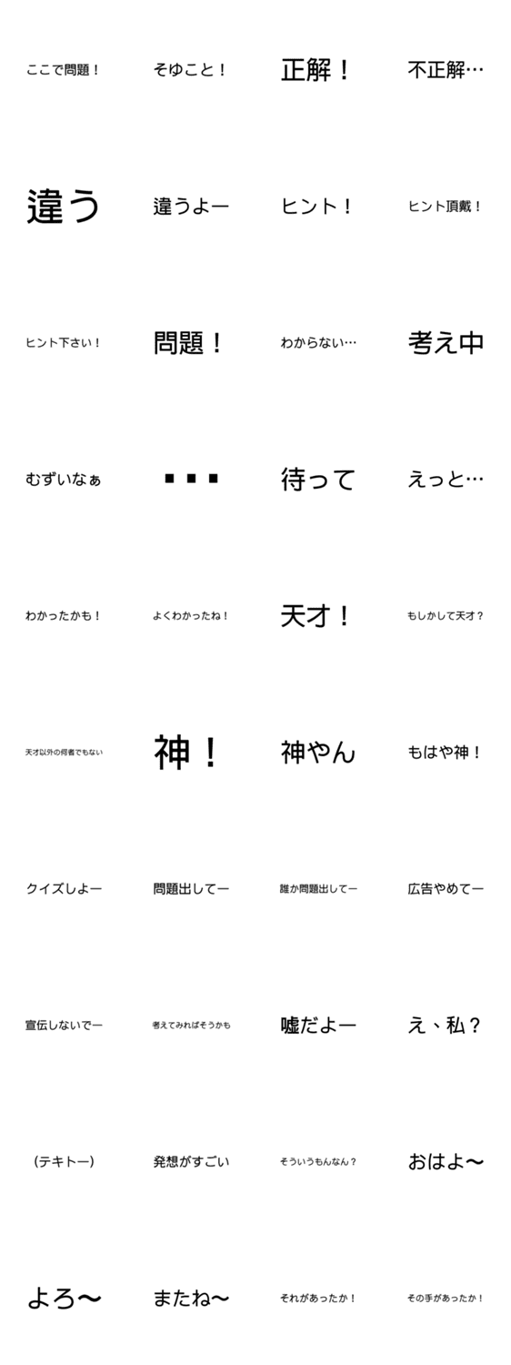 Lineスタンプ クイズに使える文字スタンプ日常会話にも 40種類 1円